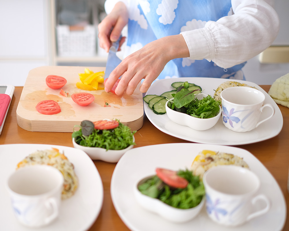 Cheer up tableでは、調味料の種類や量を極限まで抑えても、美味しい料理を作り上げる『美味しさ作りの手法』をご用意。食材の旨味を最大限に引き出し、自然な旨味に美味しいと反応できる感覚を大切にする調理法です。